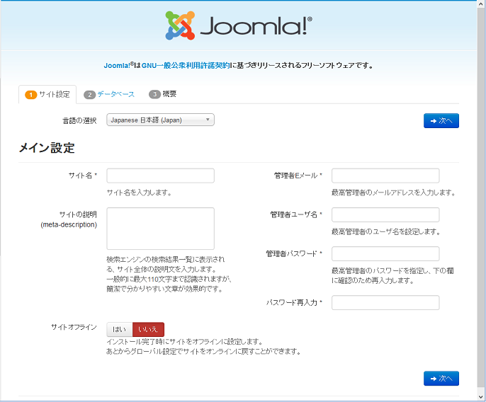 インストールするJoomla!(ジュームラ)最新版です。