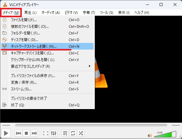WindowsなどにVLCをインストールして、メニュから「メディア」->「ネットワークストリームを開く」を選択