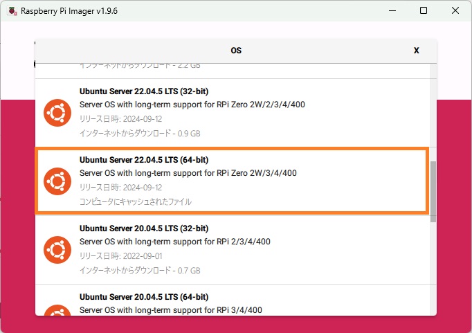 ラズパイではUbuntu Server 20.04.2 LTS(64bit)を使ってみます。
