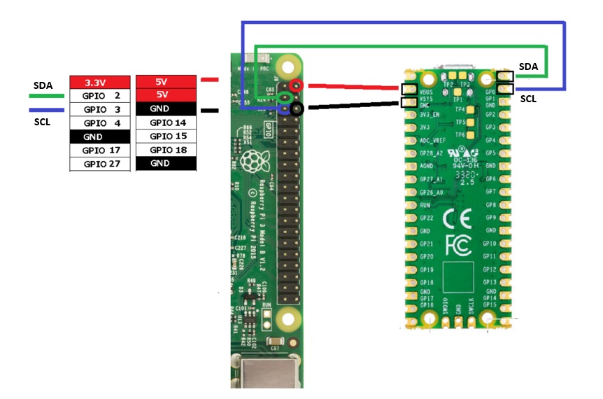 ラズパイ4Bをマスター、PicoをスレーブにしてI2Cインターフェースを使います。