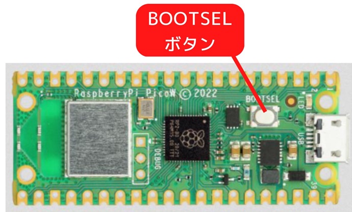 Pico のBOOTSELボタンを押しながらUSBケーブルを再接続します。