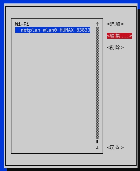 Wi-Fiアダプターの編集を選択してリターンキー。