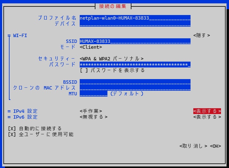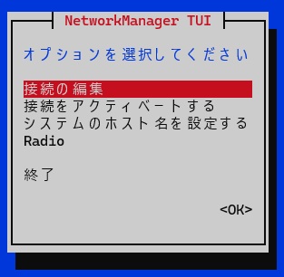 以前はdhcpcd.confを編集していましたが、新しいOSではNetwork Managerを使います。dhcpcd.confを編集しても反映されません。